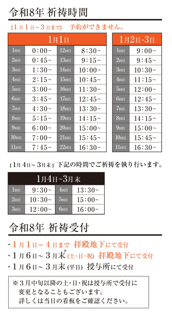 また、ご祈祷は決まったお時間でのご斎行となりますのでご了承ください。